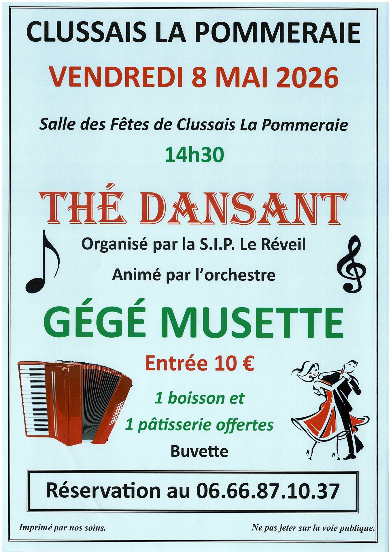 Thé dansant organisé par la SIP Le Réveil Vendredi 8 mai 2026 à 14h30 animé par l'orchestre Gégé Musette